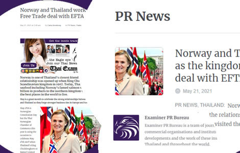 The PR Bureau news stories will be under its banner on Thai Examiner and will have a similar layout and style of presentation while also being published with the news website’s daily news stories and general coverage.