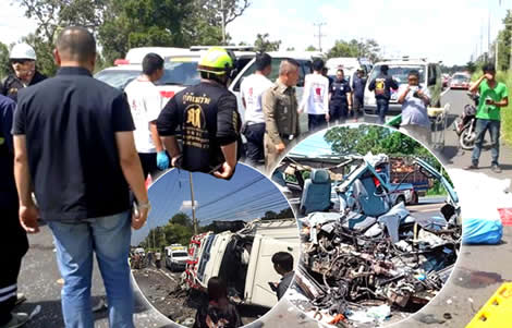 It is reported that the van travelling at high speed in the Warin Chamrab district of the province, lost control causing it to swerve on to the other side of the road. It was then hit by an approaching six-wheeler truck.