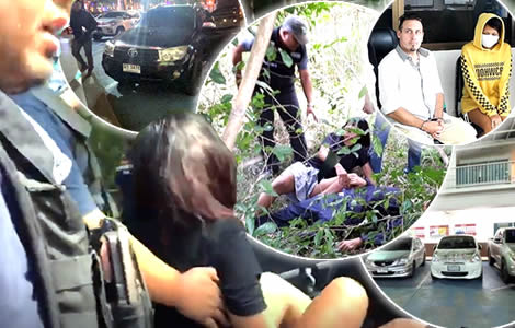On Wednesday afternoon at a Sa Kaeo sugar plantation, police who did not fire at the escapees, witnessed a pitiful scene as the young woman held the hands of her drug-dealing husband who exactly two days prior has repeatedly stabbed a Thai police officer at the Pattaya Provincial Court in an unnecessary brutal attack that left the man in a critical condition.