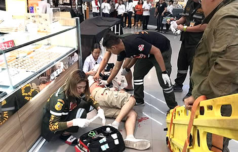 A two-year-old child and two staff members of a gold store have been killed with more than 4 injured by a gunman who robbed the Aurora gold shop at the Robinsons Shopping centre in Lopburi on Thursday night.