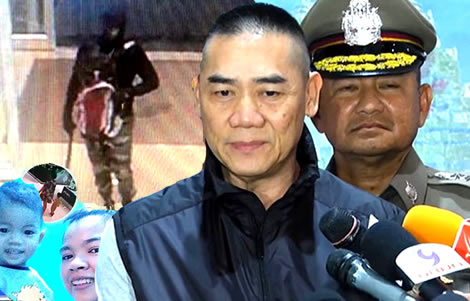 Thailand’s National Chief of Police General Chakthip Chaijinda this week blamed media reporting of the investigation in Lopburi into the robbery of a gold shop and the murder of three people including a two-year-old toddler with his mother (inset) at the Robinson Shopping Centre on January 9th for tipping off the suspect (left inset). He said he feared that the culprit had crossed Thailand’s border into a neighbouring country. The police chief flew to Lopburi at the beginning of the week.
