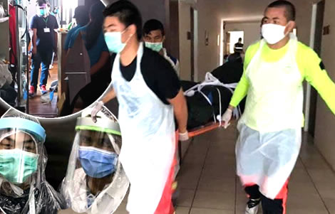 The body of the European man was removed with extra care. The operation carried out by volunteers with the Kusoldham Foundation wearing protective clothing. It was removed to Vachira Phuket Hospital where an autopsy was to be conducted.
