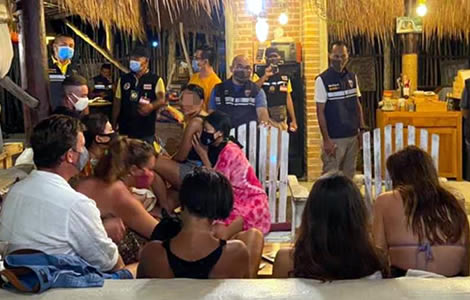 On Sunday evening, Thai police, immigration bureau officers and a team of local officials led by Lieutenant Colonel Manoj Chanthiang, the deputy chief of Bo Phut police, raided a popular seaside bar and restaurant in the sub-district of Maret on Ko Samui.