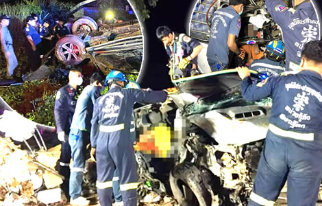 Police in Phitsanulok and Chiang Rai provinces have opened two investigations following the early morning deaths of 5 people in separate road traffic accidents. In one horrific incident, four young men, all in their twenties, died after being hurled from a pickup truck at a dangerous bend when the vehicle they were travelling in, collided with a sedan car which had tried to overtake it on the road.