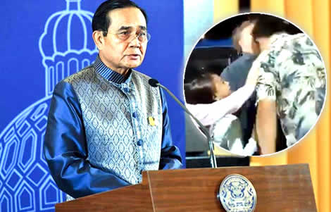 General Prayut specifically referred to an incident on Sunday night where a Thai protest leader, Narathiwat ’Ken’ Khamma, furiously attacked a Russian man now named as 52-year-old Vladislav Timokin among a small crowd gathered near Jomtien Beach in Pattaya leaving him bloodied and his 10-year-old daughter hysterical.