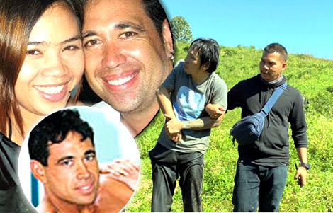 (Right) The arrest by Crime Suppression Division Police on Monday of 40-year-old Yiamwut Julapong on a court warrant issued on April 22nd 2006 in connection with the murder of New Zealand man Stephen Miller (inset left bottom) who was murdered in a conspiracy instigated by his then 39-year-old Thai girlfriend and relationship partner Jintana Wichachai (inset left top).