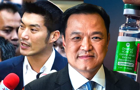 A Facebook broadcast last week by Progressive Movement leader Thanathorn Juangroongruangkit (left) questioning the vaccination strategy in Thailand has sparked an outcry from government officials and ministers leading to his prosecution under Lèse-majesté charges. On Tuesday, the latest comments by Mr Thanathorn drew a response from Minister of Public Health Anutin Charnvirakul (centre) who defended the government’s plan but also suggested that the vaccination process in the kingdom will not be complete until the end of 2022.