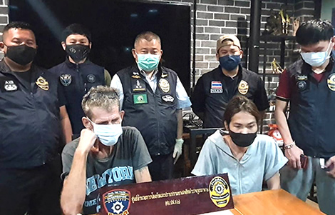The pair arrested were named by police as Mr Claus Mike Haberstroh and Ms Panadchai Noo-chit who were living at a house on Soi Khao Talo 5 in the Nong Prue area of Banglamung in the resort city.