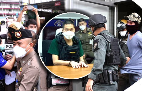 On Thursday, there were extraordinary scenes in Nakhon Sawan when police from the city centre police station, along with elite armed officers, exited five of the accused men from the building to a waiting van to transport them to Nakhon Sawan Provincial Court at approximately 10 am.