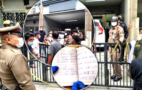 A 66-year-old French man who arrived at a business premises on Wednesday in central Bangkok was killed in a shooting incident with his own gun after he attempted to execute a murder-suicide mission which he alluded to with scrawled notes in a notebook he brought to the scene. This is one of the theories being pursued by police at Thong Lor Police Station who are investigating the horrific incident which occurred while the employees of the firm were taking their daily lunch break.