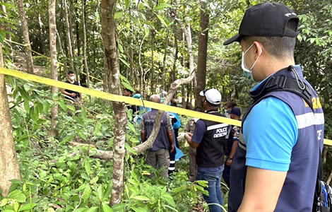 The body was found by a dog owned by a man identified as Mon who had come to the plantation to meet 46-year-old Mr Somchok Pongphat who was cutting grass at the bottom of Khao Khee Rhino Forest Park on the island.