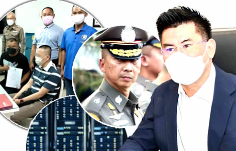(Right) The Director-general of the Department of Trade at the Ministry of Commerce Wattanasak Sueaiam has said that there will be severe consequences including maximum disciplinary and criminal action against an official within the department if the conclusions of an enquiry due next week confirm reports already received from the cyber crime police alleging the systematic sale of business registration data to criminal gangs operating offshore. (Inset top) On Wednesday, last Police Lieutenant Colonel Karnaboon Boonkerd, the Crime Suppression Division (CSD) chief at Ao Noi Police Station in Prachuap Khiri Khan, acknowledged an order removing him from government service on October 10th following his arrest and appearance in court on October 11th. He faces charges relating to other national database breaches and abuse on an ongoing basis. The news follows a press conference given by Deputy National Police Commissioner and Cyber Crime Police Chief Police General Torsak Sukwimol on Friday (inset centre).