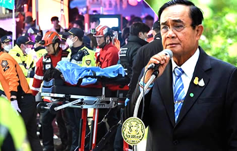 Thai Prime Minister Prayut Chan ocha has expressed his sadness at the tragedy that unfolded in Seoul, South Korea on Saturday night when a Halloween Party went awry after it is reported that nearly 100,000 people ended up crushed together into an area near Itaewon Street in the capital which was once a red light area in the heyday of US servicemen being stationed in the city in the 1960s.
