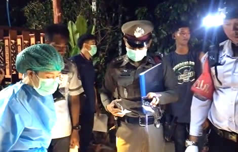 Wife was shocked after she returned from Songkran celebrations in the late evening before nightfall to find her husband floating face down in the pool. She told police that the old water pump, which was still running, had been known to short circuit before as it appears the man and his dog were both electrocuted.