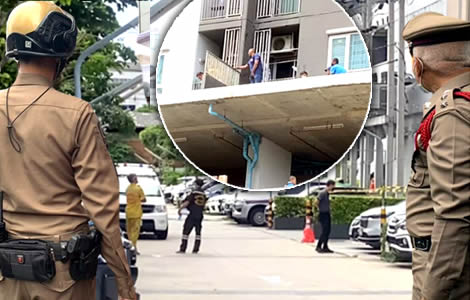 A horrific scene greeted police from Lak Song station on Friday morning at approximately 8 am when they responded to reports of a man falling from a condominium building on Sai 2 Road in the Bang Khae district of Bangkok.