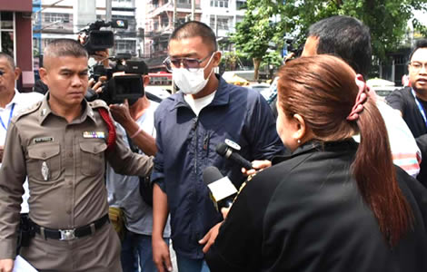 Earlier on Saturday, Police Lieutenant Colonel Natthanon, who is reported to be a senior officer working with the Police Forensics Division in Samut Prakan, surrendered to police at Chokchai police station accompanied by his lawyer.
