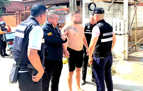 He was taken into custody by investigators from Pattaya City Police Station. Immigration Bureau officers received a tip from a volunteer working with the Royal Thai Police.