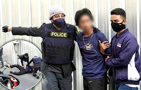 Chase on motorbikes and crash eventually led to the arrest of the suspect in the Bang O sub-district of Bangkok. Search warrant then executed by officers