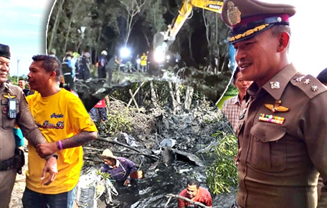A plane, which took off from Suvarnabhumi Airport on Thursday afternoon, fell from the sky just over eleven minutes later, southeast of Bangkok in Chachoengsao. All nine aboard the aircraft are thought to have been killed, including five foreign tourists travelling to southern Trat province. On Thursday night, rescuers working against time and rising floodwaters began to discover body parts as they unearthed the aircraft, which had gone down head-first into a marshy swamp area.