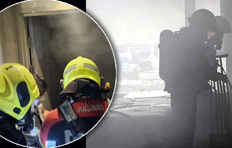 Flames erupted on the 11th floor of a Bangkok hotel in Phra Khanong, forcing firefighters to evacuate as smoke engulfed the building. The blaze was quickly contained. (Source: Khaosod)