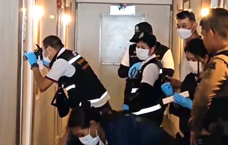 Pol. Lt. Col. Adisorn Kongkoi, Deputy Superintendent of Investigation at Na Jomtien Police Station, arrived with Pol. Lt. Suriya Yuphum, Deputy Investigation Inspector. Rescue workers from the Sawang Rojana Sattahip Foundation and doctors from Wat Yansangwararam Hospital attended the scene. Subsequently, police secured the room and began a detailed inspection.