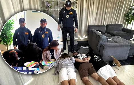 A police operation on Koh Phangan on Sunday led to the arrest of three Israeli tourists at a luxury villa, where cocaine, ketamine and ecstasy were seized. In a follow-up raid targeting their alleged dealer, a 48-year-old Israeli was arrested at another location and a larger cache of illicit narcotics was recovered. Police said the drugs were branded with a gun logo linked to the network operating in the area. All four suspects were taken into custody at Koh Phangan Police Station.